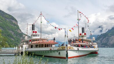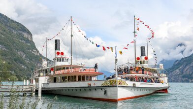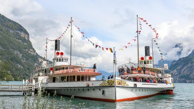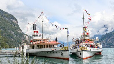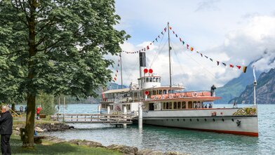 Die diesjährige Generalversammlung führte nach sieben Jahren wieder einmal ans hinterste Ende des Sees, nach Seedorf. Für Seedorf war die Ankunft der beiden historischen Raddampfer «Uri» und «Unterwalden» etwas Besonderes, wird doch die Station an der südlichsten Bucht des Urnersees seit geraumer Zeit von der Schifffahrtsgesellschaft des Vierwaldstättersees nicht mehr angefahren.