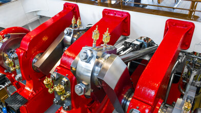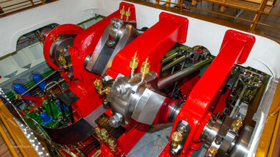 • Schrägliegende Zweizylinder- Heissdampf- Verbundanlage mit Einspritzkondensation