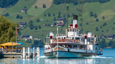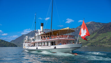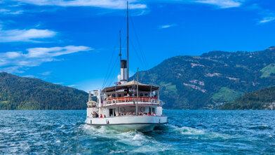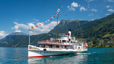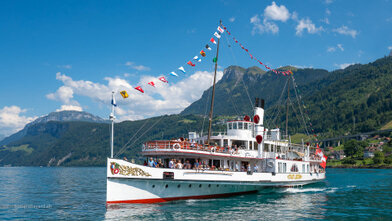 Das Flaggschiff der Schifffahrtsgesellschaft ist das grösste und imposanteste Passagierschiff auf dem Vierwaldstättersee. Das jüngste Dampfschiff der Flotte hat die stärkste Maschinenleistung und grösste Transportkapazität. Der maritime Raddampfer hat wunderschöne Art-Deko-Salons. Als einziger Dampfer der Flotte stammt das Schiff aus der Werft der Gebrüder Sachsenberg in Rosslau an der EIbe.