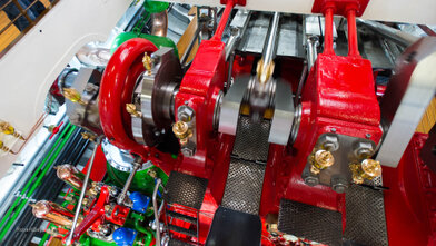 • Schrägliegende Zweizylinder- Heissdampf- Verbundanlage