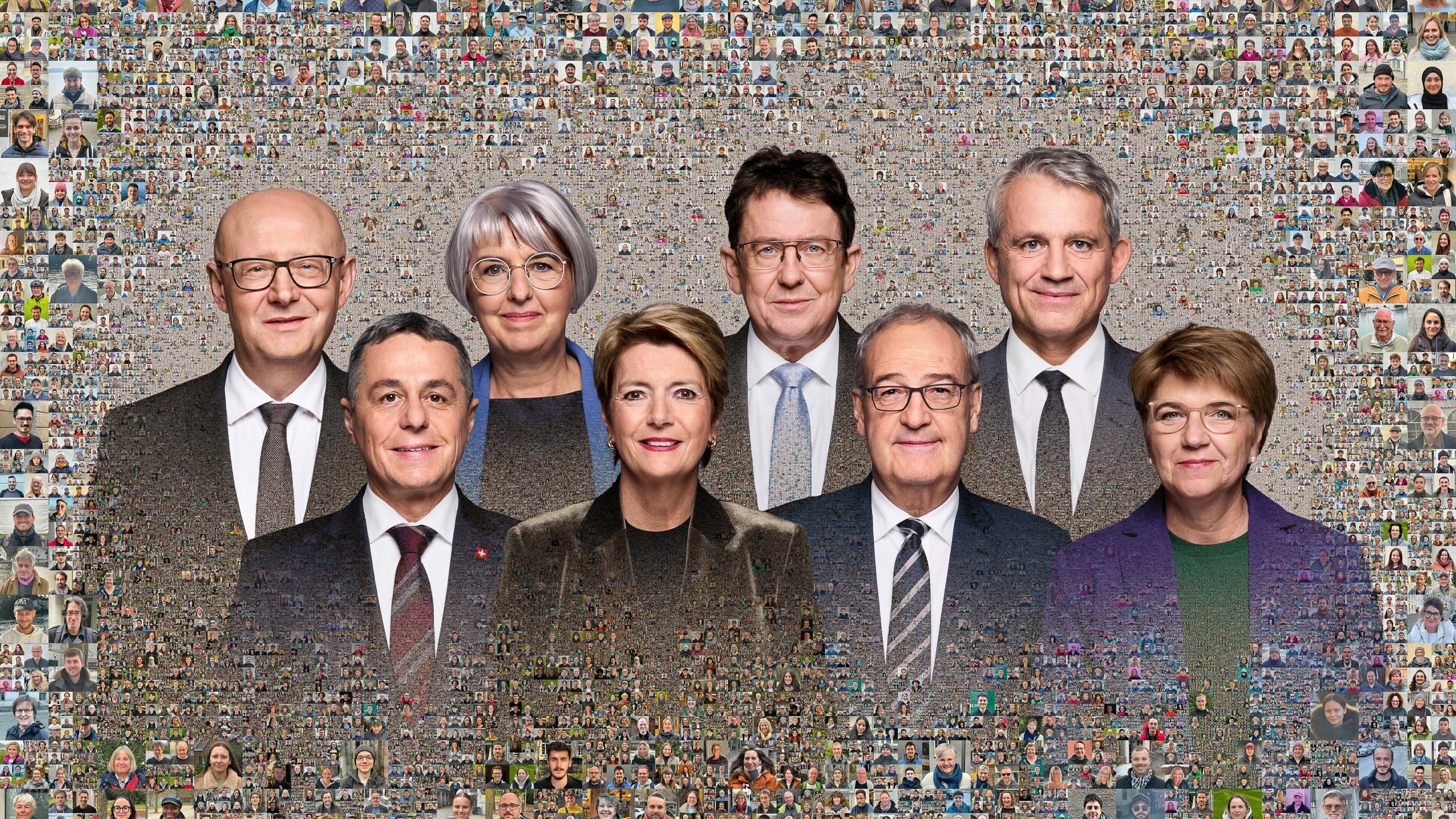 Der Bundesrat besteht aus sieben gleichberechtigten, von der Vereinigten Bundesversammlung fest auf vier Jahre gewählten Mitgliedern. Jedes Mitglied steht einem Eidgenössischen Departement vor, jedoch sind alle Mitglieder für die Regierungsarbeit gemeinsam verantwortlich. Zwei Mitglieder sind jeweils für die Dauer von einem Jahr Bundespräsident und Vizepräsident. Der Bundespräsident leitet die Sitzungen des Bundesrats, die in der Regel im Bundeshaus in Bern stattfinden.