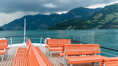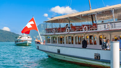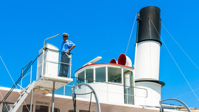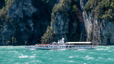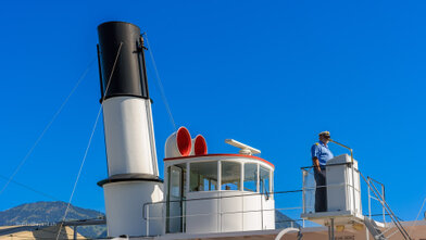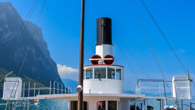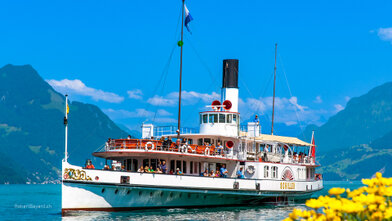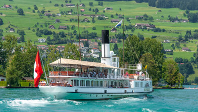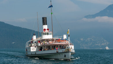 Der klassische Raddampfer mit dem einzigartigen Salon im geometrieschen Jugendstil.