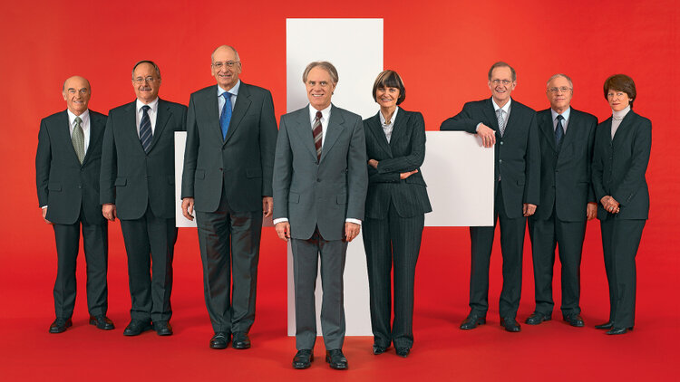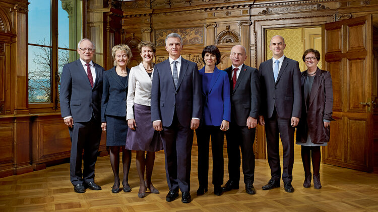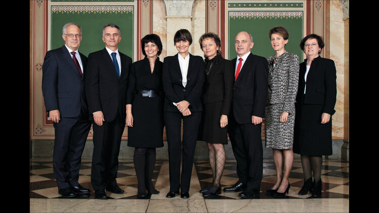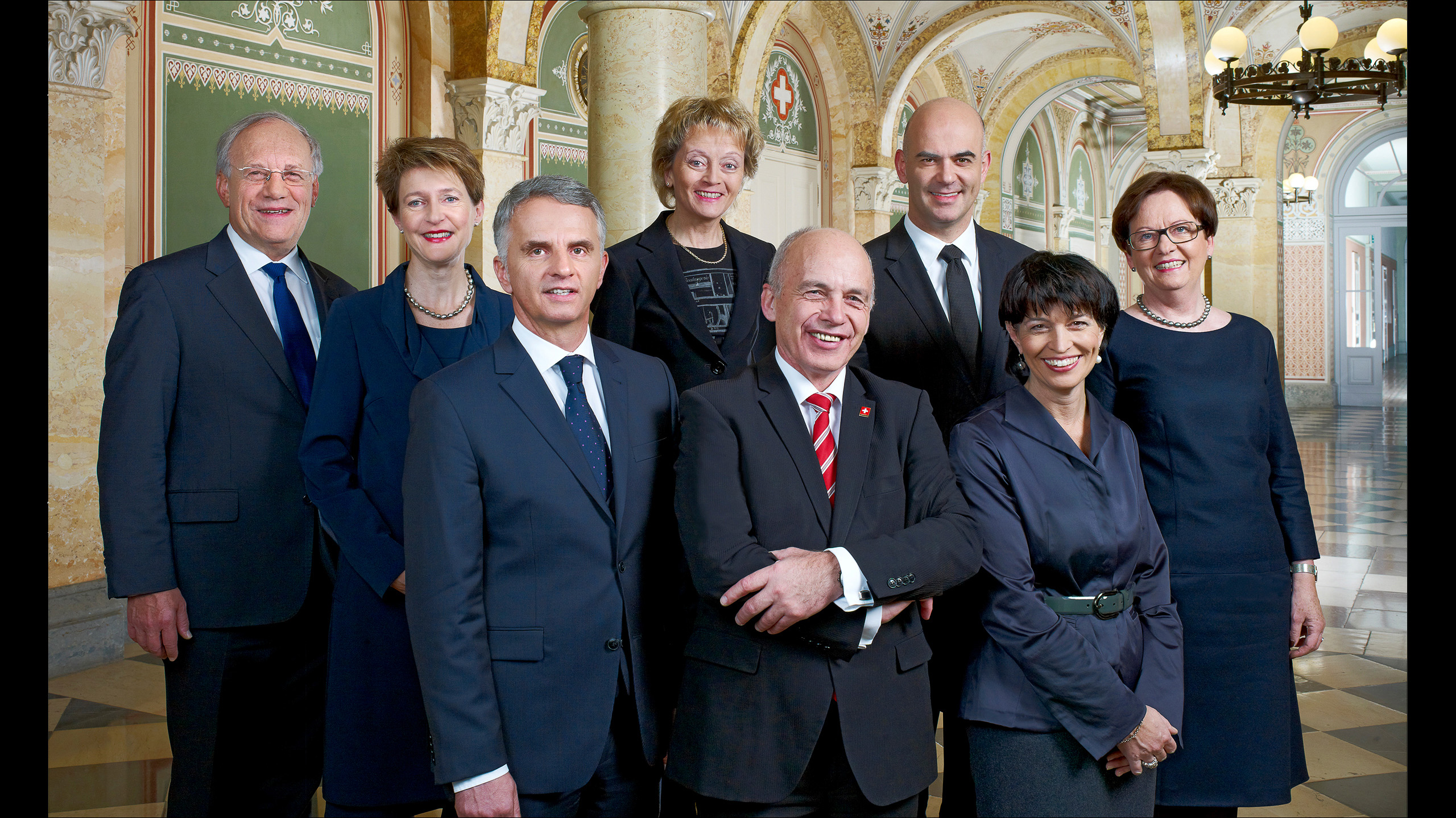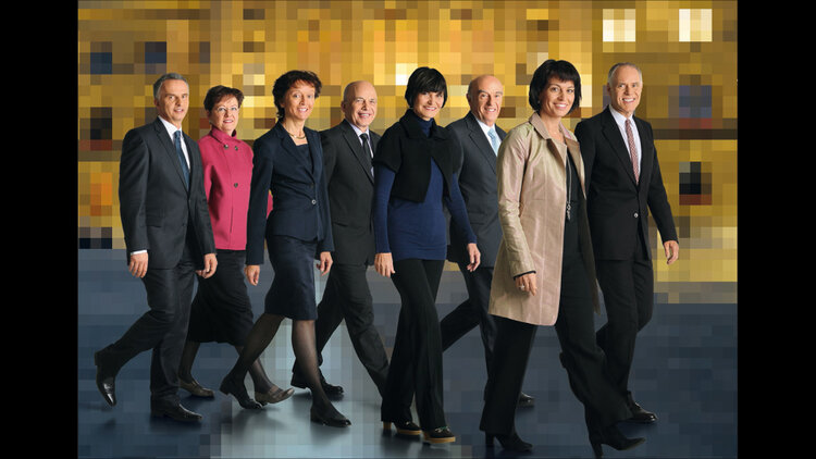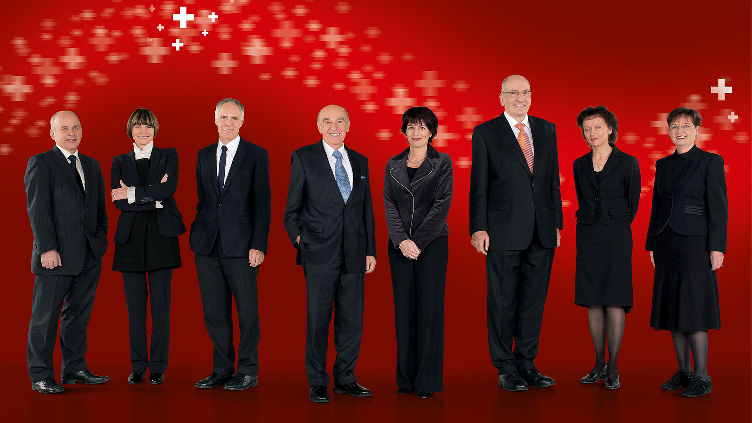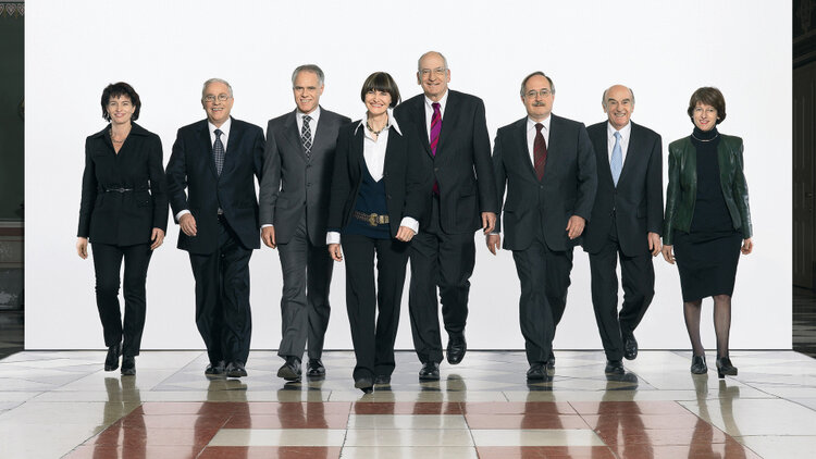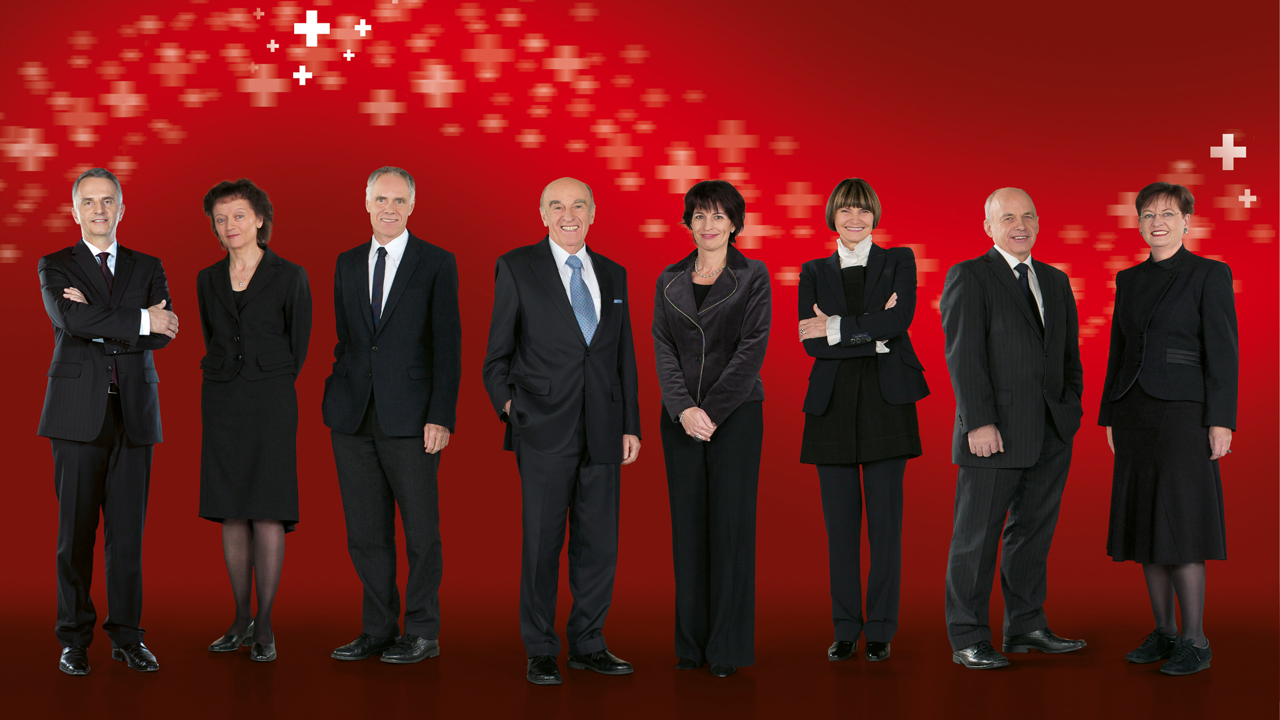 Der Bundesrat besteht aus sieben gleichberechtigten, von der Vereinigten Bundesversammlung fest auf vier Jahre gewählten Mitgliedern. Jedes Mitglied steht einem Eidgenössischen Departement vor, jedoch sind alle Mitglieder für die Regierungsarbeit gemeinsam verantwortlich. Zwei Mitglieder sind jeweils für die Dauer von einem Jahr Bundespräsident und Vizepräsident. Der Bundespräsident leitet die Sitzungen des Bundesrats, die in der Regel im Bundeshaus in Bern stattfinden.