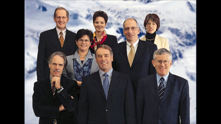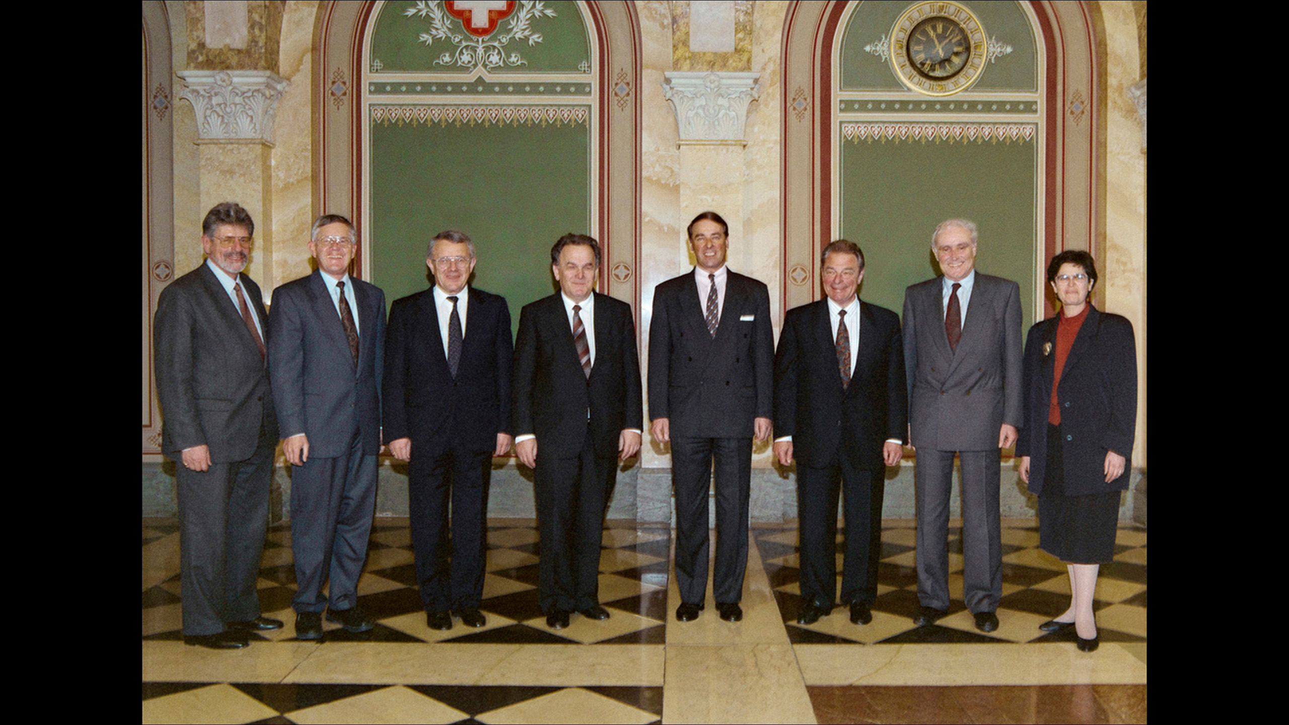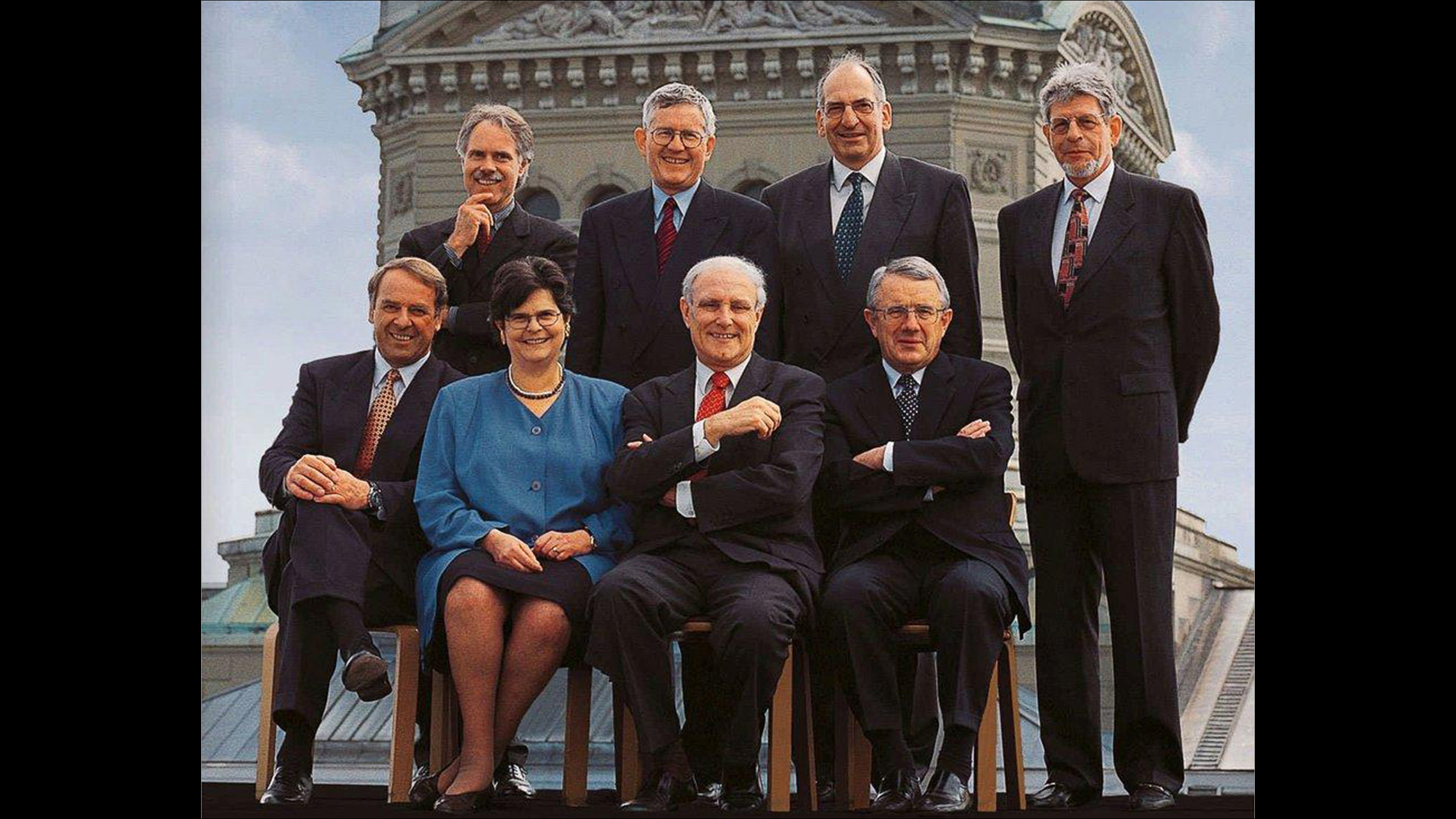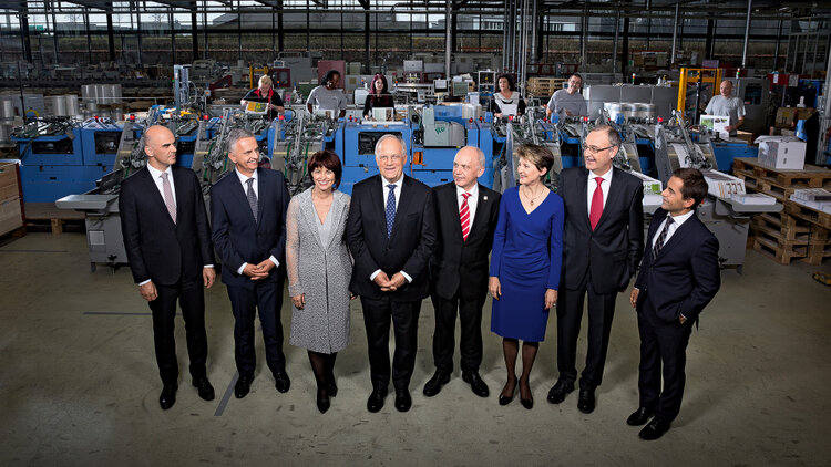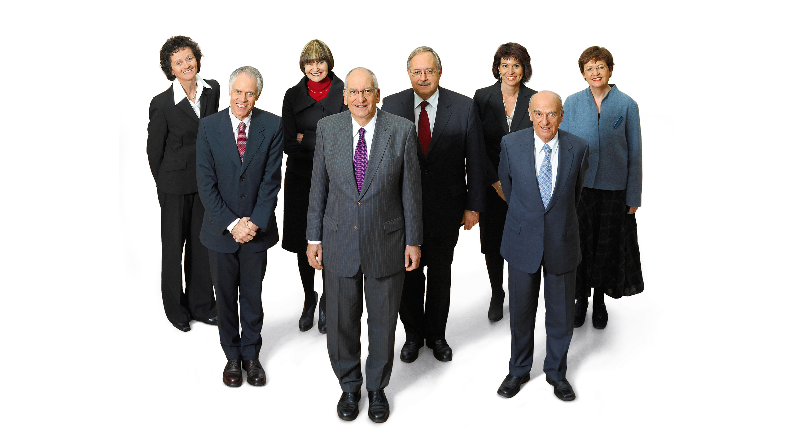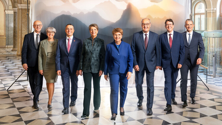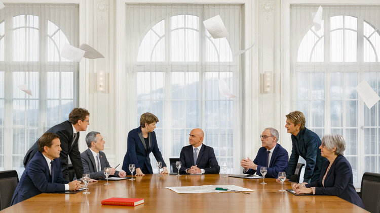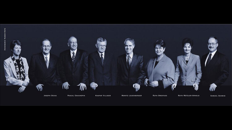 Der Bundesrat besteht aus sieben gleichberechtigten, von der Vereinigten Bundesversammlung fest auf vier Jahre gewählten Mitgliedern. Jedes Mitglied steht einem Eidgenössischen Departement vor, jedoch sind alle Mitglieder für die Regierungsarbeit gemeinsam verantwortlich. Zwei Mitglieder sind jeweils für die Dauer von einem Jahr Bundespräsident und Vizepräsident. Der Bundespräsident leitet die Sitzungen des Bundesrats, die in der Regel im Bundeshaus in Bern stattfinden.