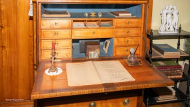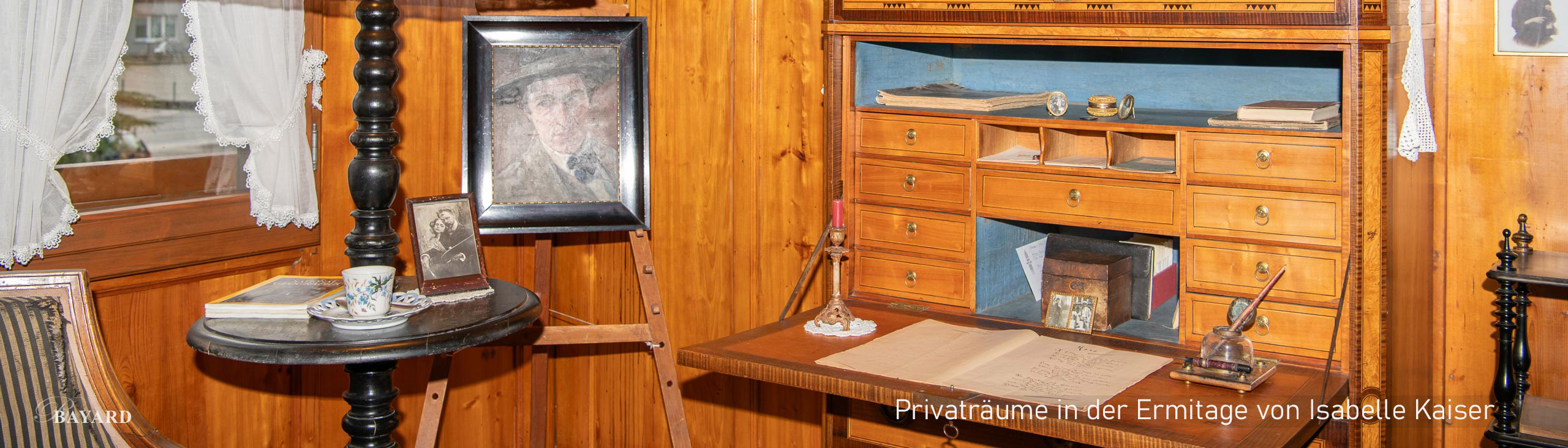 An zwei 30-minütigen Führungen hat uns die Dichterin Isabelle Kaiser, gespielt von Maja Schelldorfer, eingeladen ihre Ermitage in der sie bis zu ihrem Tode gelebt und geschrieben hat, kennen zu lernen.