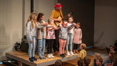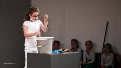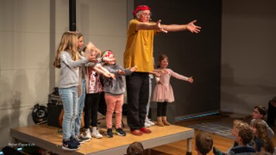 Schulkinder konnten, unter der Leitung der erfahrenen Theaterschaffenden und Pädagogin Claudia Berg, an vier Tagen in fremde Rollen schlüpfen, sich zum Beispiel als Clown, Sängerin oder Star fühlen. Szenen erfinden, die Welt des Theaters entdecken und kurze Geschichten schreiben und spielen. Es ging um Bewegung, Sprache, Emotionen, Clownerie, Musik, Tanz und Texte.