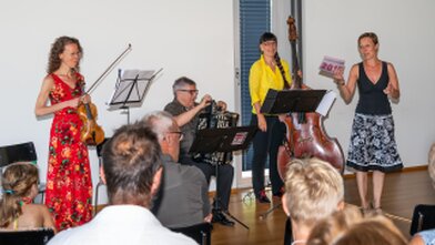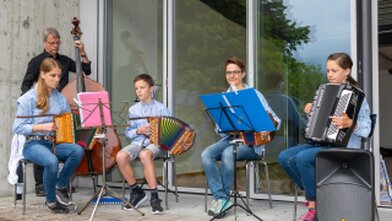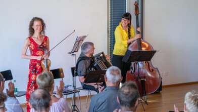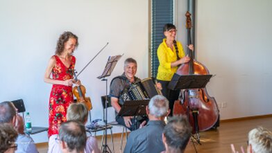 Das «Trio Joseph Bachmann» mit Leandra Wolf an der Violine, Laura Cesar am Kontrabass und Joseph Bachmann am Akkordeon spielten europäische Volksmusik, leichte Klassik, Tango und Swing. Die Besucher waren über die virtuos gespielte Musik begeistert.