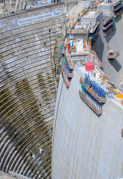 Grosse Staumauern werden in der Schweiz nicht mehr allzu häufig gebaut – die Ersatzstaumauer Spitallamm an der Grimsel im Berner Oberland ist eine dieser wenigen.