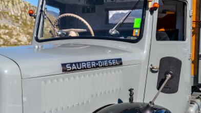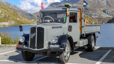 Jahrgang 1945 mit Sechszylinder- Benzinmotor mit 55 PS, aufgenommen auf dem Grimselpass im September 2018