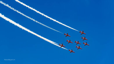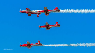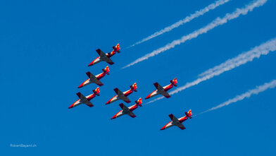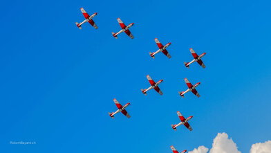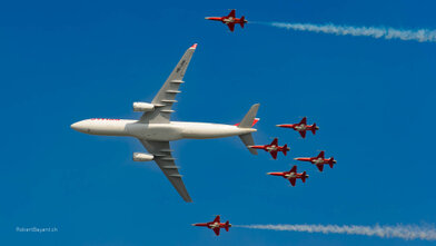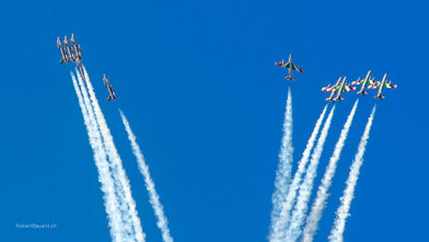 Fotografien der Internationalen Luftfahrtsshow in Payerne 2004 und 2014. An der Air-14 waren auch zwei Linienflugzeuge, ein Airbus A380 und ein Airbus A330-300 von Swiss anwesend. Fast 400‘000 Besucher machten die Airshow zu Ehren von 100 Jahren Luftwaffe, 50 Jahren Patrouille Suisse und 25 Jahren PC-7 TEAM zum Erfolg.