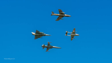 Mit 24 F-5 Tiger der Schweizer Luftwaffe, die zusammen die Zahl «100» am Himmel über Payerne bildeten!