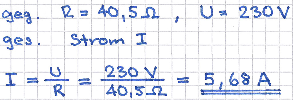 Welchen Strom nimmt die Heizwicklung eines Boilers von 40,5 Ω Widerstand bei 230 V Spannung auf?