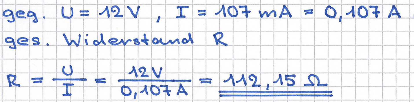 Welchen Widerstand besitzt die Spule eines Gleichstromrelais, die bei 12 V Spannung einen Strom von 107 mA aufnimmt?