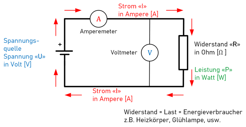 Wenn an einen Widerstand R eine Spannung U angelegt wird, fliesst ein elektrischer Strom I.