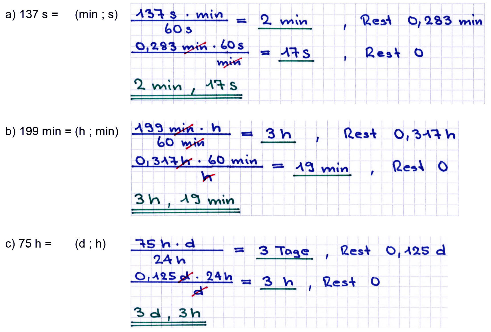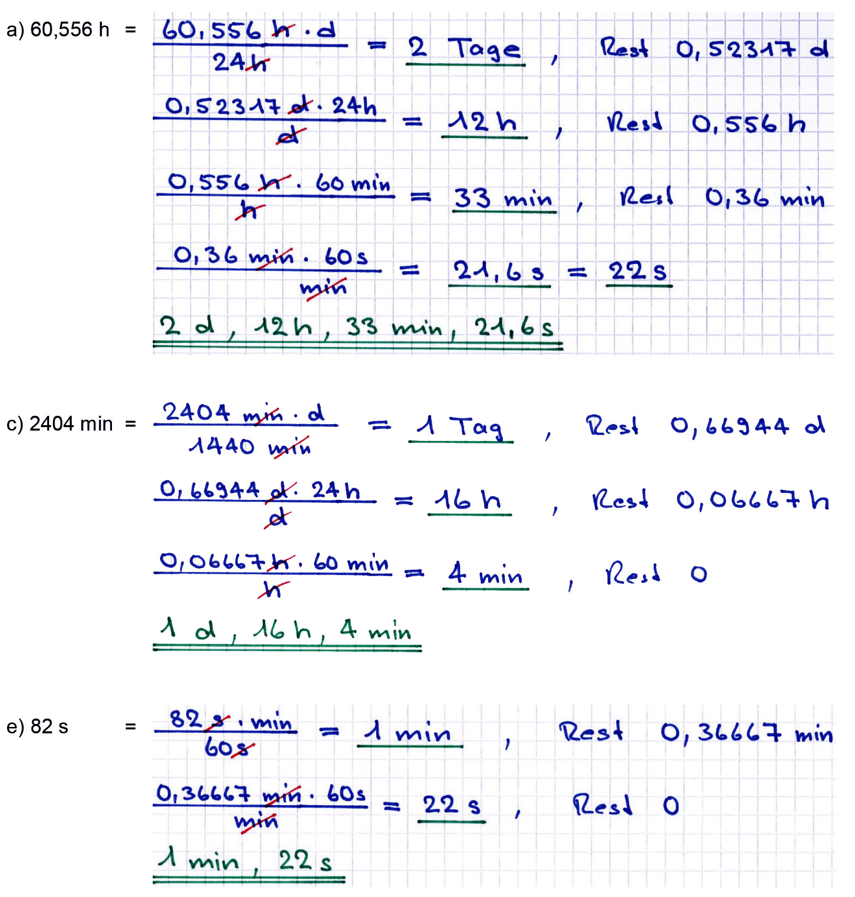 Umwandlungen von Dezimalstellen in d / Std. / Min. / Sek.