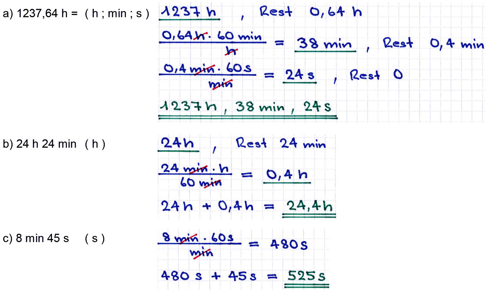 a) 1237,64 h (h, min, s)