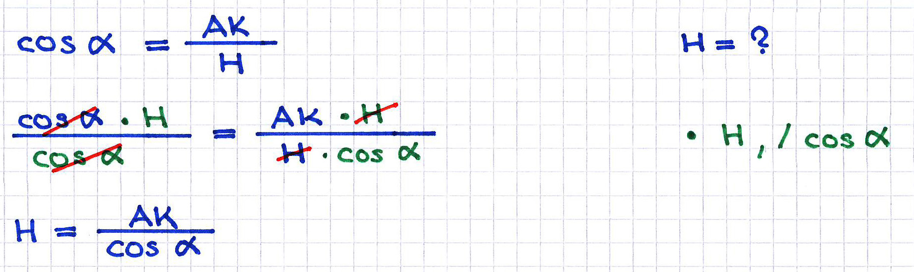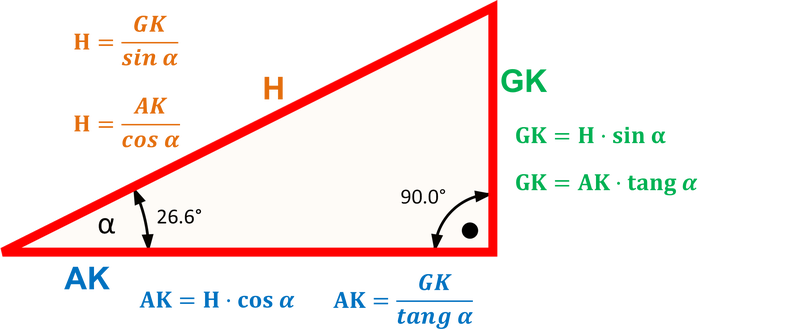 Formeln im rechtwinkligem Dreieck
