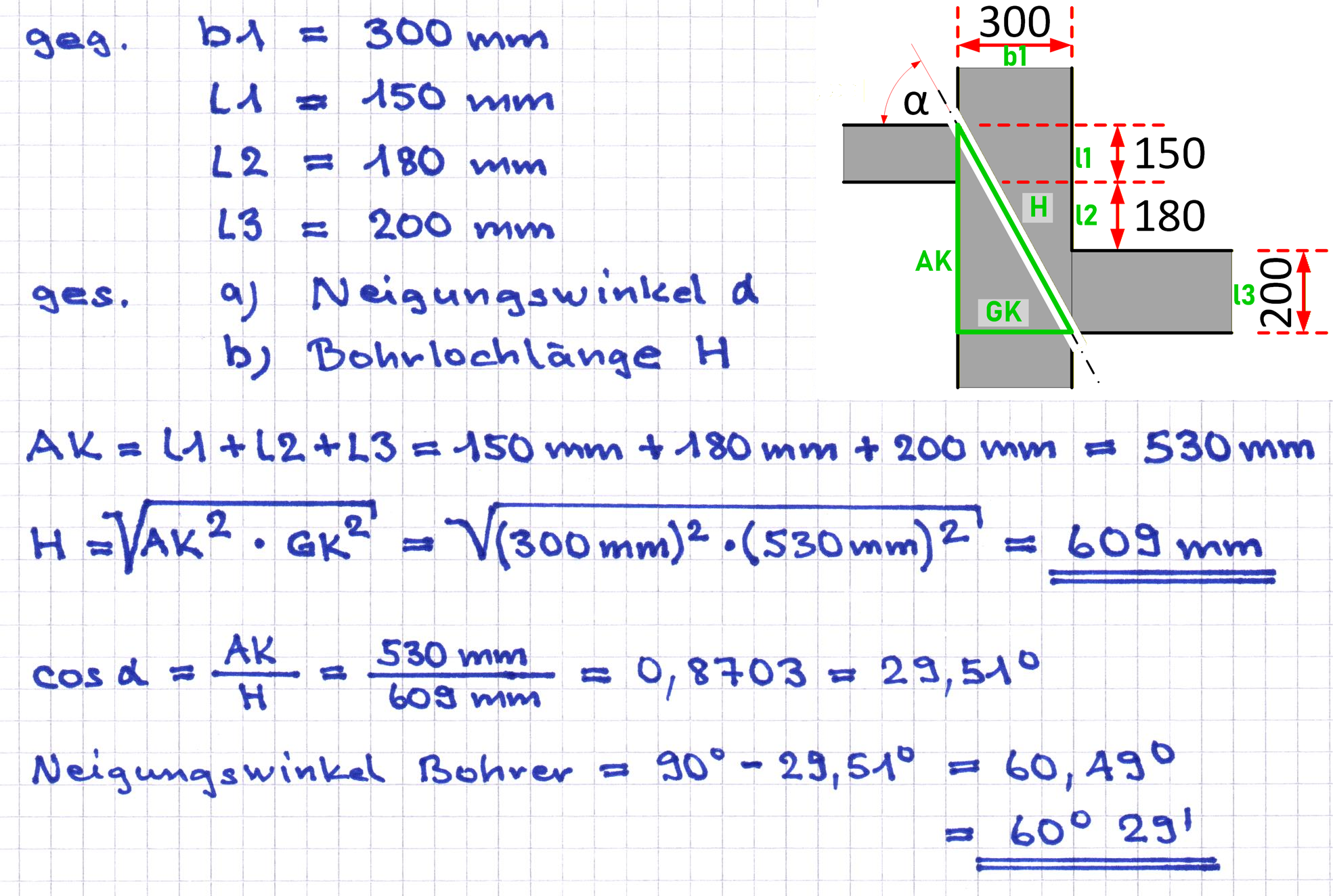 b) die Länge des Bohrloches!