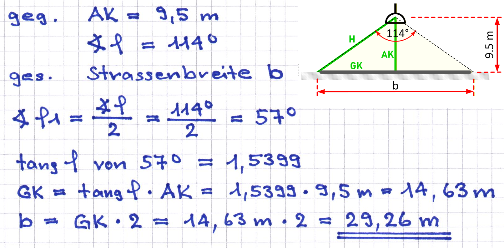 Auf welche Breite b leuchtet die Strassenlampe die Strasse aus?
