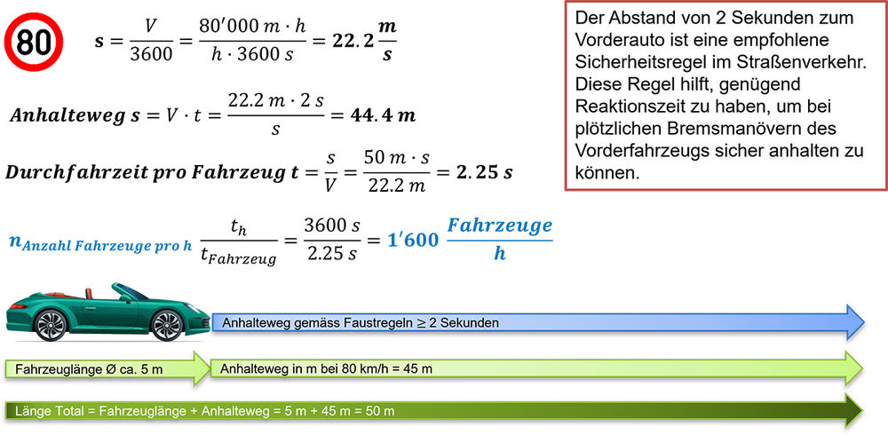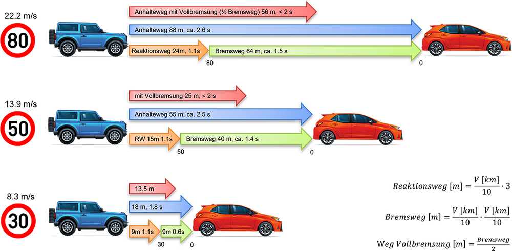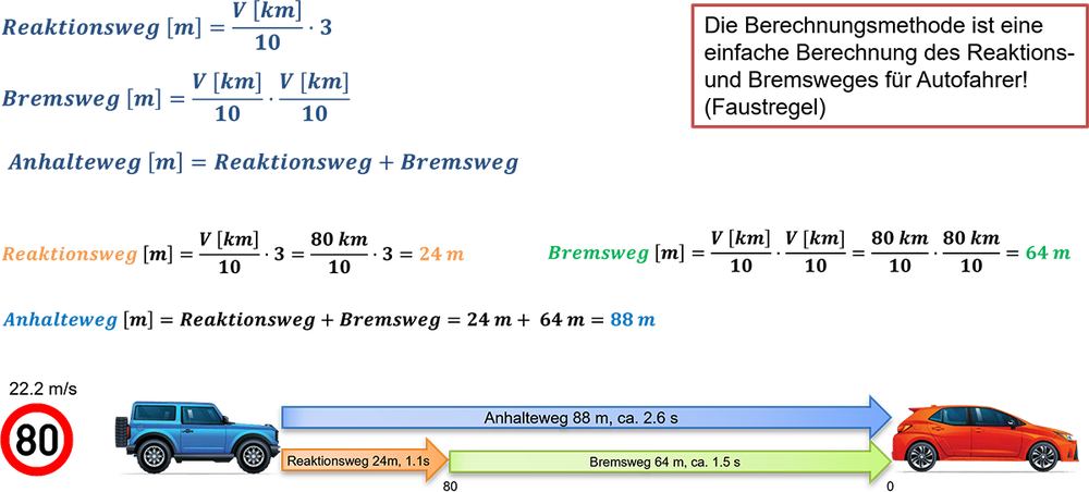 🍃13.2 Berechnung Reaktions-, Brems- und Anhalteweg (Beispiel bei 80 km/h)