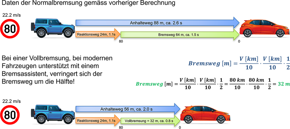 🍃13.4 Beispiele für den Anhalteweg mit Normal- und Vollbremsung