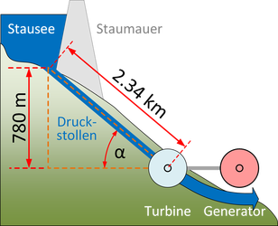 Die für einen Druckstollen verwendeten Rohre sind insgesamt 2.34 km lang und liegen in einer Geraden.