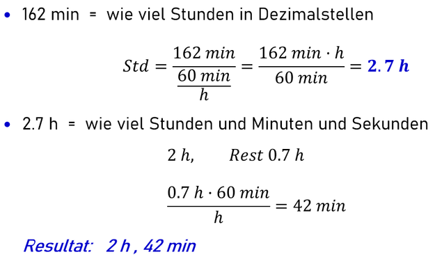 Umwandlung von Zeit (Std. / Min. / Sek.) in eine gut lesbare Einheit mit Dezimalstellen (z.B. 15,62 h oder 1,5 min)