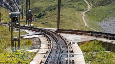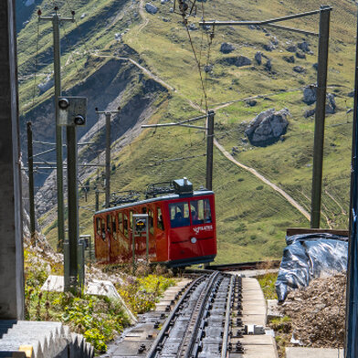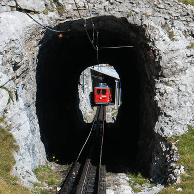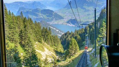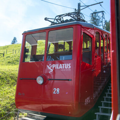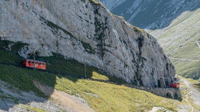 Die steilste Zahnradbahn der Welt fährt ab Alpnachstad mit einer maximalen Steigung von 48 Prozent durch Wald, Wiesen und Felswände. Auf der Nordseite verbindet eine Gondel- und Luftseilbahn Kriens mit dem Pilatus Kulm.