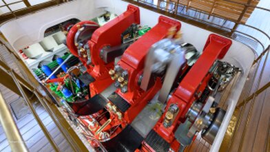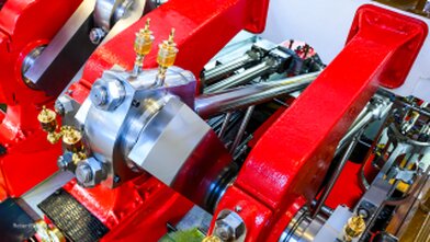 • Schrägliegende Zweizylinder- Heissdampf- Verbundanlage mit Einspritzkondensation