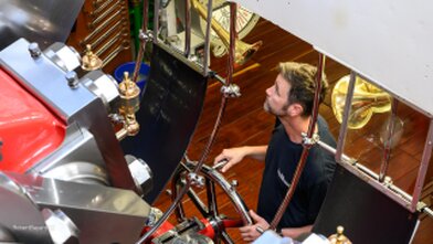 • Schrägliegende Zweizylinder- Heissdampf- Verbundanlage