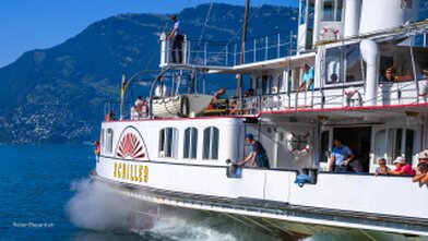 DS Schiller gilt bei Dampferfreunden als der beliebteste Dampfer. Sein Erstklass-Salon, gestaltet im geometrischen Jugendstil, ist mit Ebenholz und Perlmuttereinsätzen ausgestattet und ist sehr luxuriös, er steht unter Denkmalschutz.