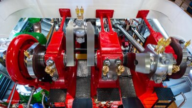 • Schrägliegende Zweizylinder- Heissdampf- Verbundanlage