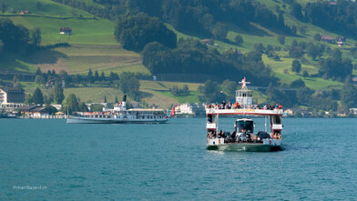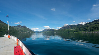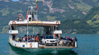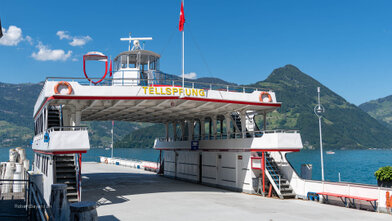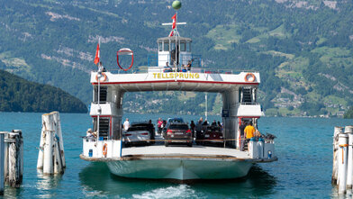 Seit Eröffnung der Fährverbindung 1930 stellt die Fähre Tellsprung den Fährverkehr sicher. Das Schiff wurde 1929 durch Kaspar Burkhard in Oerlikon gebaut, wieder in Einzelteile zerlegt und anschliessend in der Hasler Bootswerft am Alpnachersee fertiggestellt.